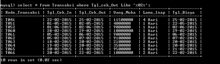 8. Gunakan Perintah fungsi – fungsi yang terdri dari fungsi String, Fungsi tanggal, dan fungsi Agrasi disetiap tabel.